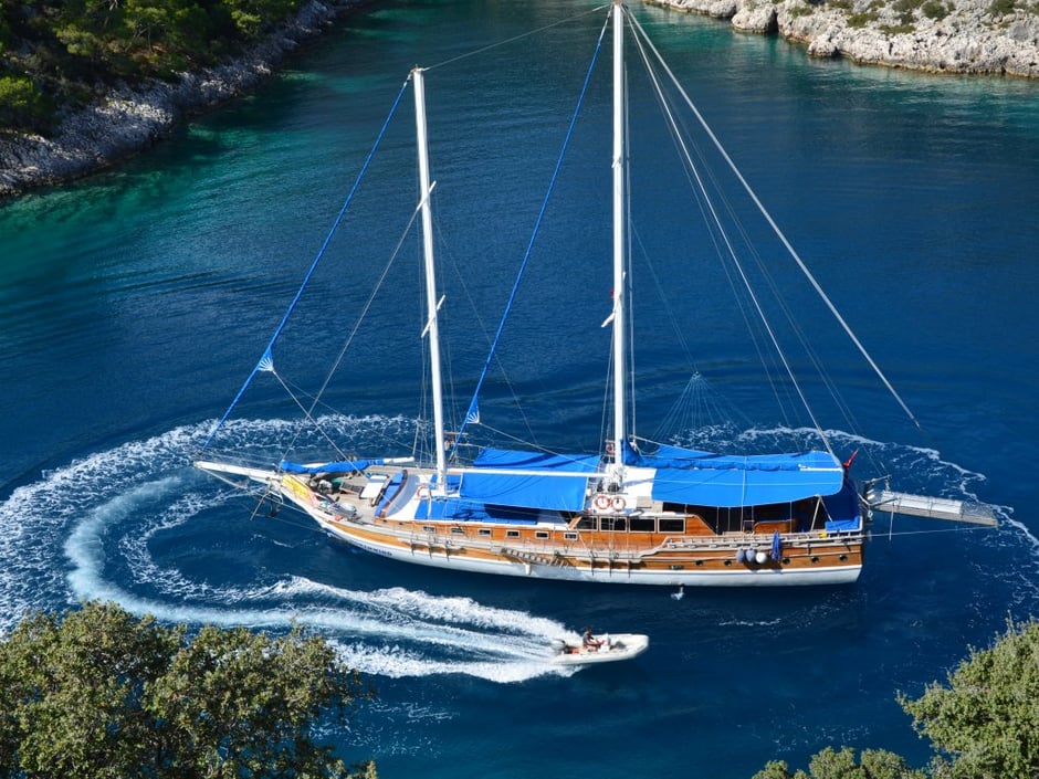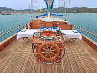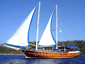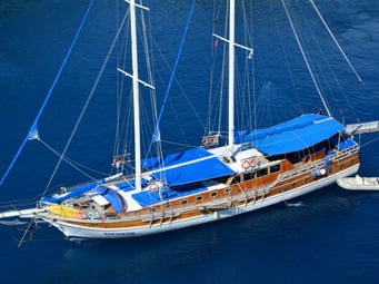 She is a 25 meter long wooden gullet with 8 cabins, and she can accommodate up to 17 guests. With her, you can enjoy blue voyage tours on the Mediterranean and Aegean Sea, and around the Greek islands.