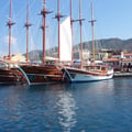 If all passengers arrive before 18:30, our boat will set sail and anchor in the nearest cove for dinner. Otherwise, the gulet will stay anchored in Marmaris harbor for the night. We would like you to consider this information while plan your flight to Marmaris.