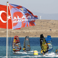kite boarders, brand new equipment, Alacati Windsurf School occupies the best spot along the bay as part of the Alacati Beach Resort tourism investment.