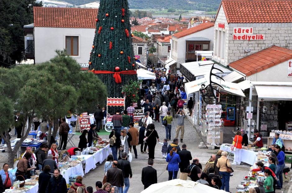 watched by a large crowd. Alacati is a picturesque little town. The stone houses and narrow alleyways look like they have just popped out of an oil painting, and the market is always lively and bustling with people on Saturdays. In the evenings you can stroll along the beautifully restored houses and choose from a multitude of top notch restaurants serving Mediterranean dishes. There are many bars and even some night clubs although the majority is located around Cesme.